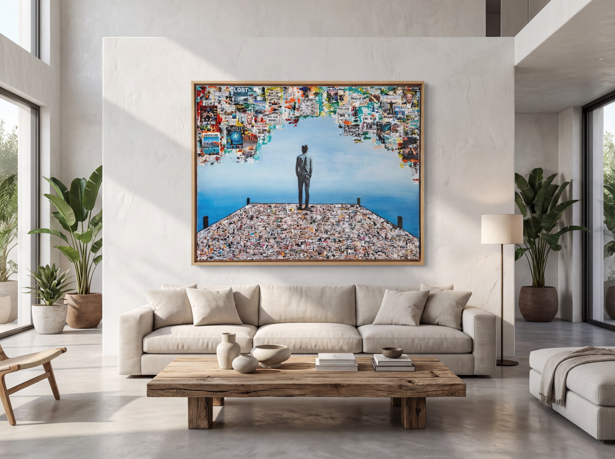 Confused avec ses dimensions imposantes (150 × 100 cm) et ses couleurs vives, il projette le spectateur au cœur du tumulte intérieur que chacun peut ressentir face aux choix et incertitudes de la vie.