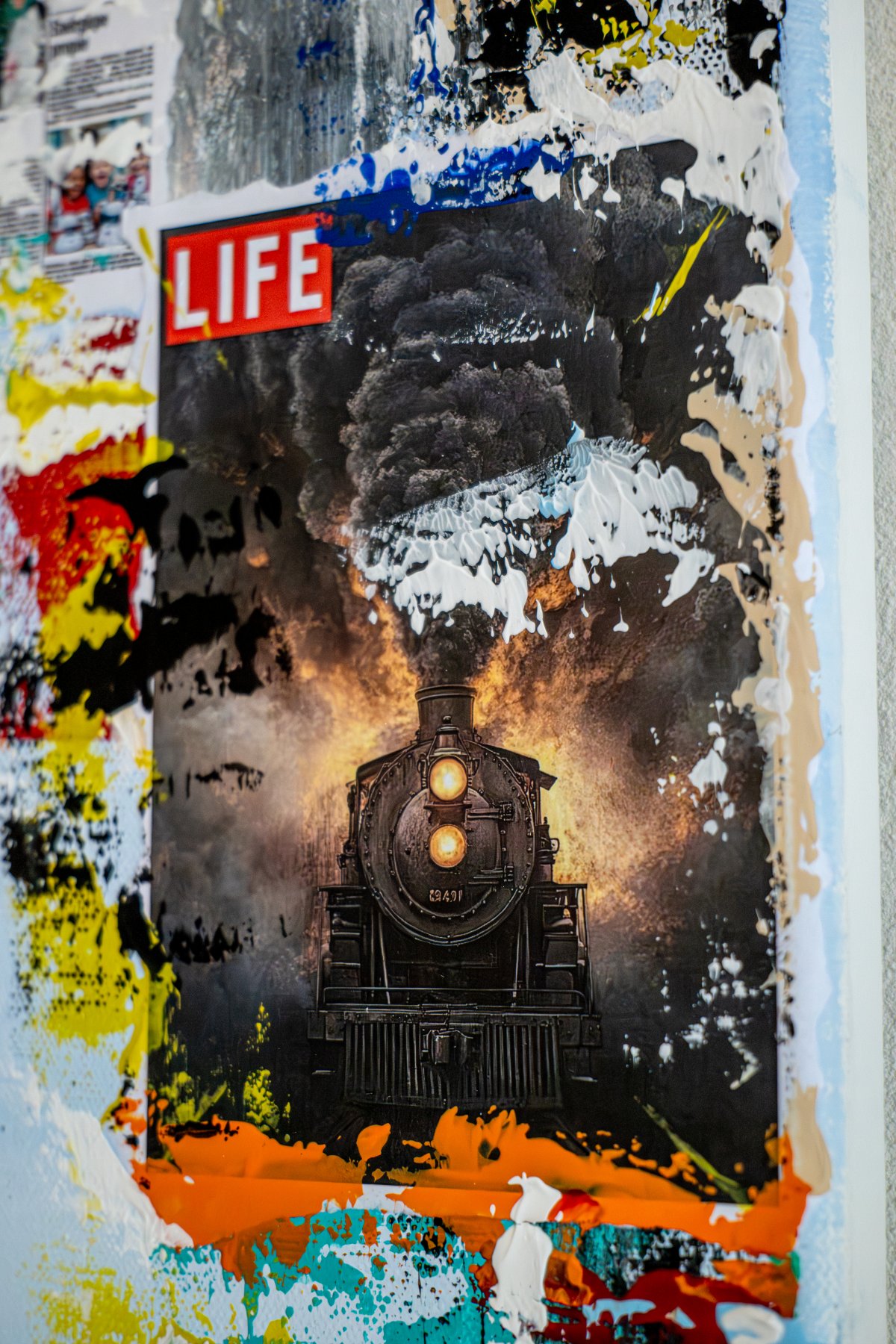 And Now ? explore l’instant suspendu où chacun, au moins une fois dans sa vie, s’arrête pour regarder en arrière… puis en avant. Ce moment où l’on contemple tout ce qui a été vécu — les réussites, les chutes, les rencontres — et où une question s’impose : « Et maintenant ? » Sur un ponton constitué d’une multitude de fragments de papiers déchirés, métaphores de souvenirs et d’expériences accumulées, une silhouette de dos fait face à l’horizon. Elle incarne la progression dans la vie : on avance, parfois sans savoir clairement vers où, mais on avance toujours. Le ciel se confond doucement avec l’océan : une étendue calme, lumineuse, presque apaisante. Pourtant, ce futur clair est partiellement voilé par un foisonnement de couvertures de magazines et de pages de journaux. Mots d’ordre, injonctions, peurs, espoirs, promesses d’aventure ou de chute : toutes ces voix, internes ou sociétales, se superposent et racontent la complexité de l’avenir. Au centre, suspendue au-dessus du personnage, une horloge rappelle la pression du temps : passé, présent, futur se croisent dans cet instant précis. Chaque fragment d’actualité collé représente un défi à venir, une question ouverte, une émotion qui guette — du doute à l’excitation, de l’anxiété à la curiosité. À la manière d’un miroir, And Now ? invite chaque spectateur à y projeter son propre récit. Voit-on d’abord l’horizon dégagé, promesse d’un futur radieux ? Ou la construction chaotique qui le masque, symbole des obstacles et des craintes ? Entre lucidité et espoir, l’œuvre suggère que la vie oscille constamment entre ce que nous avons traversé, ce que nous redoutons… et ce que nous rêvons encore.
