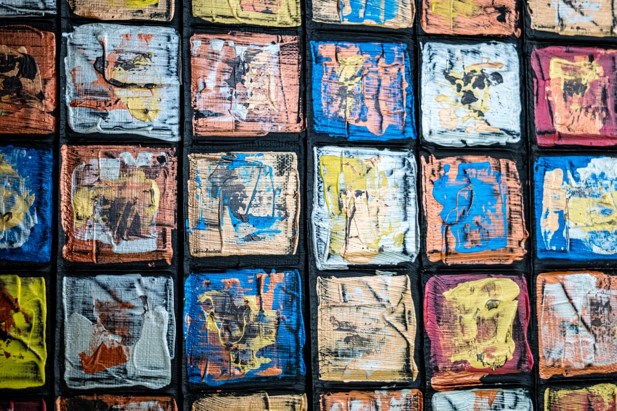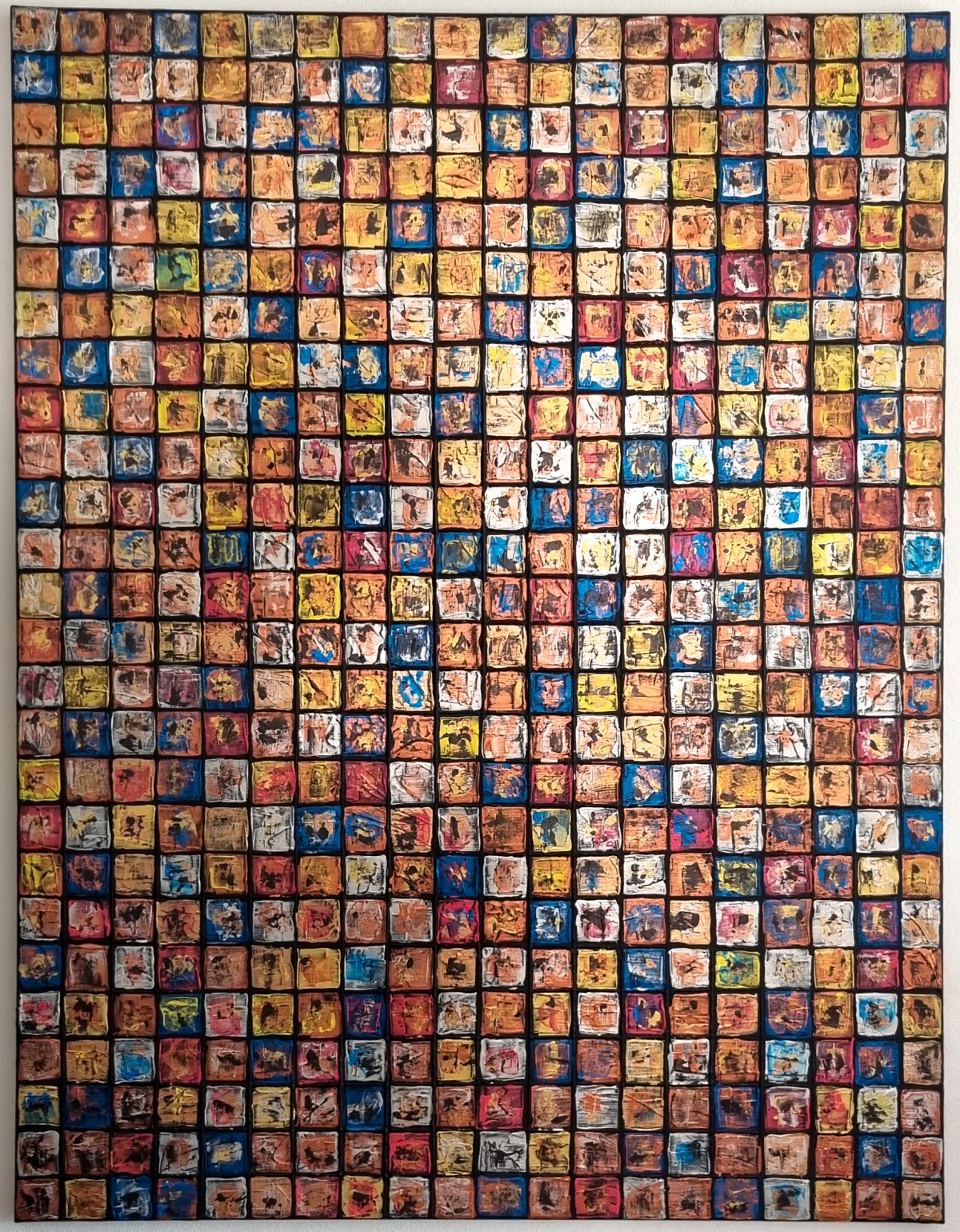 Née d’un besoin instinctif de mettre de l’ordre dans le désordre, Story Wall se présente comme une architecture de fragments. Chaque case est une trace : un éclat de mémoire, un reflet d’émotion, parfois même un silence. Comme un mur où se superposent les souvenirs, l’œuvre invite à parcourir ces parcelles visuelles comme on lirait une histoire sans mots. La matière acrylique métallisée joue un rôle essentiel dans cette narration. Selon la lumière, les reflets se déplacent, les couleurs se transforment, les formes apparaissent ou s’effacent. L’oeuvre semble alors respirer avec l’espace, changeant d’humeur au fil des heures et du regard posé sur elle. Libre à chacun d’y projeter ses propres images, d’y reconnaître un symbole ou d’y sentir une émotion surgir. Story Wall ne raconte pas une histoire unique, mais une multitude , celle que chacun choisit de lire.